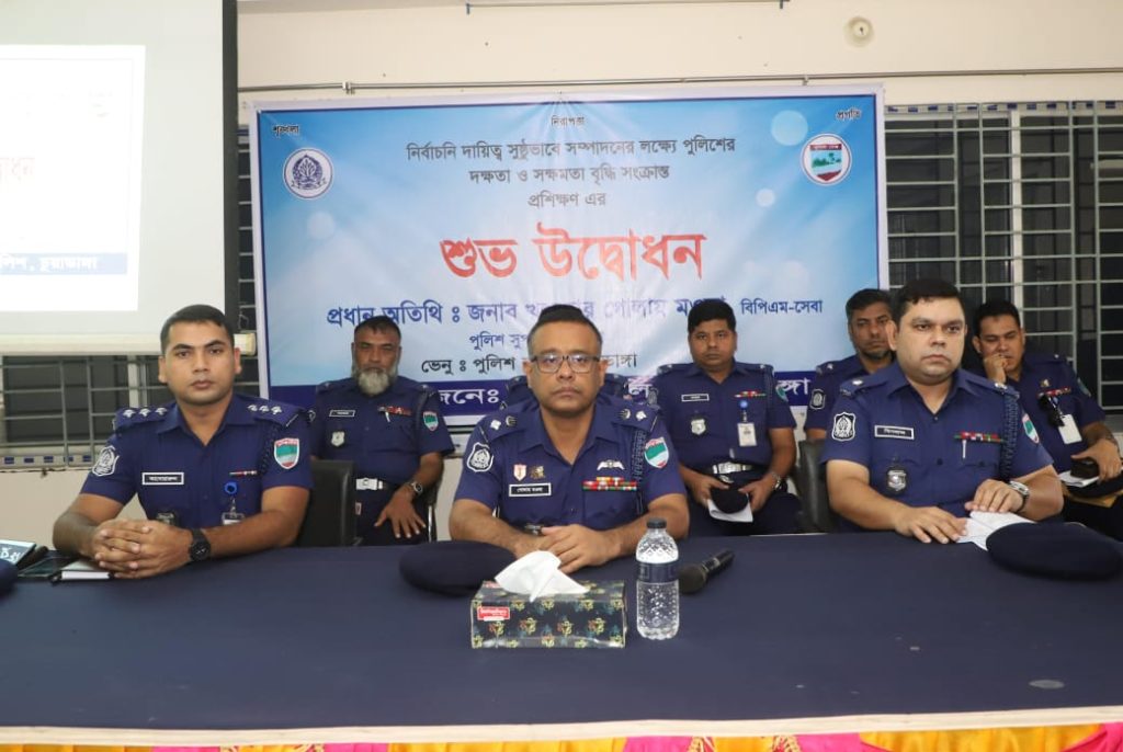 নির্বাচনী দায়িত্ব সুষ্টুভাবে সম্পাদনের লক্ষ্যে কনস্টেবল হতে ইন্সপেক্টর পদমর্যাদার পুলিশ সদস্যদের দক্ষতা ও সক্ষমতা বৃদ্ধির লক্ষে এ প্রশিক্ষণ অনুষ্ঠিত হচ্ছে। উদ্ধোধনী অনুষ্ঠানে পুলিশ সুপার প্রশিক্ষাণার্থীদের বলেন সংসদ নির্বাচনসহ যেকোন স্থানীয় নির্বাচনে পুলিশের নিরপেক্ষতা, শৃঙ্খলা, আইনগত জ্ঞান এবং মাঠ পর্যায়ের সক্ষমতা বৃদ্ধি ও পেশাদারিত্ব অত্যন্ত গুরুত্বপূর্ণ। নির্বাচনকে অবাধ, সুষ্ঠু ও শান্তিপূর্ণ করতে হলে আমাদের দক্ষতা ও দায়িত্ববোধের যথাযথ প্রয়োগ করতে হবে। তিনি আরও বলেন, এই প্রশিক্ষণের মাধ্যমে অংশগ্রহণকারীরা নির্বাচনকালীন আইন-শৃঙ্খলা পরিস্থিতি নিয়ন্ত্রণ, ভোটাধিকার সুরক্ষা এবং নিরপেক্ষভাবে দায়িত্ব পালনের গুরুত্বপূর্ণ দিকগুলো সম্পর্কে বাস্তব শিক্ষা লাভ করবেন। তিন দিনব্যাপী এই প্রশিক্ষণে নির্বাচনকালীন দায়িত্ব পালনের কৌশল, জনসংযোগ, সংকট মোকাবিলা, আধুনিক প্রযুক্তির ব্যবহার ও আইনের যথাযথ প্রয়োগ বিভিন্ন বিষয়ে বিশেষ সেশন অনুষ্ঠিত হবে। প্রশিক্ষণের মাধ্যমে আপনাদের পেশাগত দক্ষতা, ধৈর্য ও সিদ্ধান্ত গ্রহণের সক্ষমতা আরও সুদৃঢ় হবে।