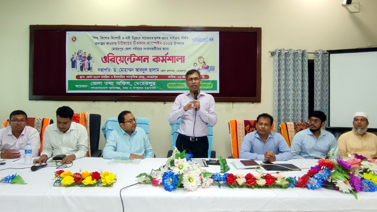 শিশু, কিশোর ও নারী উন্নয়নে সচেতনতামূলক প্রচার কার্যক্রম শীর্ষক প্রকল্পের আওতায় টাইফয়েড টিকাদান ক্যাম্পেইন উপলক্ষে মেহেরপুরে জেলা পর্যায়ের সাংবাদিকদের জন্য ওরিয়েন্টেশন কর্মশালা অনুষ্ঠিত হয়েছে। সোমবার সকাল ১১টায় ইসলামিক ফাউন্ডেশনের সভাকক্ষে আয়োজিত কর্মশালায় সভাপতিত্ব করেন জেলা প্রশাসক ড. মোহাম্মদ আবদুল সালাম। গণযোগাযোগ অধিদপ্তর ও জেলা তথ্য অফিসের যৌথ আয়োজনে অনুষ্ঠিত এ কর্মশালায় সম্মানিত অতিথি হিসেবে উপস্থিত ছিলেন গণযোগাযোগ অধিদপ্তরের উপপরিচালক তারেক মোহাম্মদ, সিভিল সার্জন ডা. আবু সাঈদ, জেলা তথ্য অফিসার আবদুল্লাহ আল মামুন এবং ইসলামিক ফাউন্ডেশনের উপপরিচালক একেএম সিরাজুম মুনির। ইউনিসেফ বাংলাদেশের সহযোগিতায় দিনব্যাপী এই কর্মশালায় মেহেরপুর জেলার প্রিন্ট ও ইলেকট্রনিক মিডিয়ার সাংবাদিকরা অংশগ্রহণ করেন।