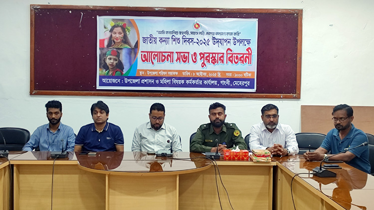 মেহেরপুর অফিস জানিয়ে, আমি কন্যশিশু স্বপ্নগড়ি, সাহসে লড়ি, দেশের কল্যাণে কাজ করি” স্লোগানে মেহেরপুরের গাংনীতে পালিত হয়েছে জাতীয় কন্যা শিশু দিবস। এ উপলক্ষে গতকাল বুধবার সকাল সাড়ে ১০ টায় গাংনী উপজেলা পরিষদ সভাকক্ষে আলোচনা সভা আনুষ্ঠিত হয়েছে।