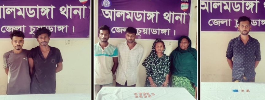 আলমডাঙ্গা থানা পুলিশ ও সেনাবাহিনীর যৌথ অভিযান এবং পৃথক মাদকবিরোধী অভিযানে ইয়াবা ও টাপেনটাডল ট্যাবলেটসহ মোট ৭ জনকে গ্রেফতার করেছে পুলিশ। বাংলাদেশ সেনাবাহিনীর হারদী অস্থায়ী ক্যাম্পের নেতৃত্বে ও আলমডাঙ্গা থানার মুন্সিগঞ্জ পুলিশ ক্যাম্পের এসআই (নিঃ) মোঃ আলমগীর কবীরের তত্ত্বাবধানে গোপন সংবাদের ভিত্তিতে জেহালা ইউনিয়নের গড়চাপড়া গ্রামে অভিযান চালানো হয়। এসময় মাঠপাড়ার মোঃ মতিয়ার রহমানের পুত্র মোঃ বকুল হোসেন (২৯) কে ২৫ পিস ইয়াবা ট্যাবলেট ও ১৮ পিস টাপেনটাডল ট্যাবলেটসহ আটক করা হয়।