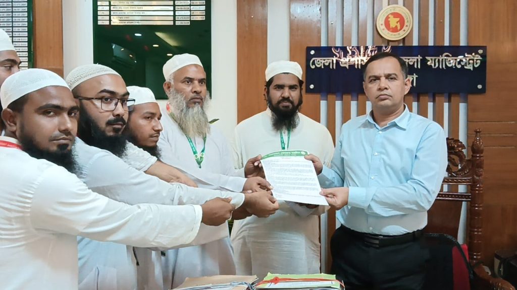 অন্তর্বর্তীকালীন সরকারের ঘোষিত আগামী ফেব্রুয়ারির জাতীয় নির্বাচনের আগে জুলাই জাতীয় সনদ বাস্তবায়ন আদেশ জারি ও উক্ত আদেশের ওপর গণভোট আয়োজনসহ ৫–দফা দাবিতে চুয়াডাঙ্গা জেলা প্রশাসকের মাধ্যমে প্রধান উপদেষ্টার কাছে স্মারকলিপি দিয়েছে মাওলানা মামুনুল হকের নেতৃত্বাধীন রাজনৈতিক দল বাংলাদেশ খেলাফত মজলিস। গতকাল রবিবার দুপুরে কেন্দ্রীয় কর্মসূচির অংশ হিসেবে বাংলাদেশ খেলাফত মজলিসের চুয়াডাঙ্গা জেলা শাখার নেতৃবৃন্দ জেলা প্রশাসকের হাতে এ স্মারকলিপি হস্তান্তর করেন। একই দাবিতে সারাদেশের বিভাগীয় শহর ও জেলাগুলোতেও একযোগে স্মারকলিপি প্রদান করা হয়।
