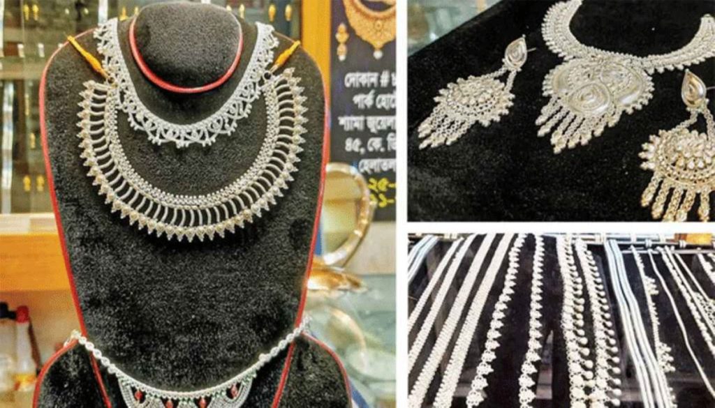 আর ১৮ ক্যারেটের এক ভরি রূপার দাম ১ হাজার ৩ টাকা বাড়িয়ে ৫ হাজার ৭৪ টাকা এবং সনাতন পদ্ধতির এক ভরি রূপার দাম ৭৪৬ টাকা বাড়িয়ে ৩ হাজার ৮০২ টাকা নির্ধারণ করা হয়েছে।