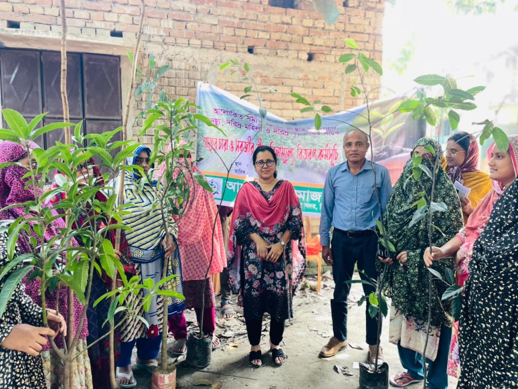 মঙ্গলবার সকালে আলোকিত সমাজ কল্যাণ সংস্থার আয়োজনে শহরের পুরাতন ধোপাঘাটা ব্রিজ এলাকায় অর্ধশতাধিক পরিবারের মাঝে আম, কাঠাল, মেহগনি গাছের চারাসহ লাউ ও মিষ্ট কুমড়ার বীজ বিতরণ করা হয়।