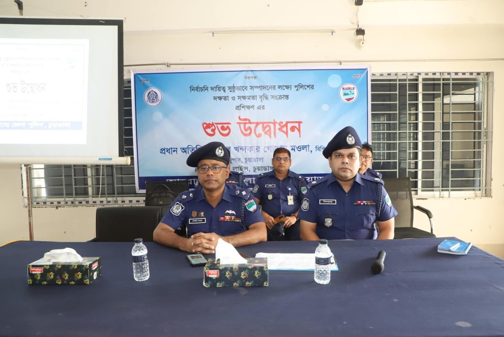 নির্বাচনী দায়িত্ব সুষ্ঠুভাবে সম্পাদনের লক্ষ্যে চুয়াডাঙ্গায় পুলিশের দক্ষতা বৃদ্ধি সংক্রান্ত ৩য় ব্যাচের প্রশিক্ষণ অনুষ্ঠিত হয়েছে। মঙ্গলবার সকাল ৯টায় পুলিশ লাইন্সে ৩ দিনব্যাপী (৩য় ব্যাচের) প্রশিক্ষণ কোর্সের শুভ উদ্বোধন করেন পুলিশ সুপার খন্দকার গোলাম মওলা, বিপিএম-সেবা।
