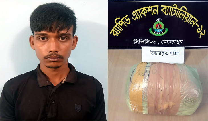 র্যাব সূত্রে জানা যায়, র্যাব -১২, সিপিসি-৩ মেহেরপুরের গাংনীস্থ ক্যাম্পের একটি দল গোপন সংবাদের ভিত্তিতে অভিযান মেহেরপুরের গাংনী উপজেলার কাথুলী ইউনিয়নের গাড়াবাড়ীয়া গ্রামে অভিযান পরিচালনা করে। এ সময় ৪ কেজি গাঁজাসহ আসামিকে আটক করা হয়।