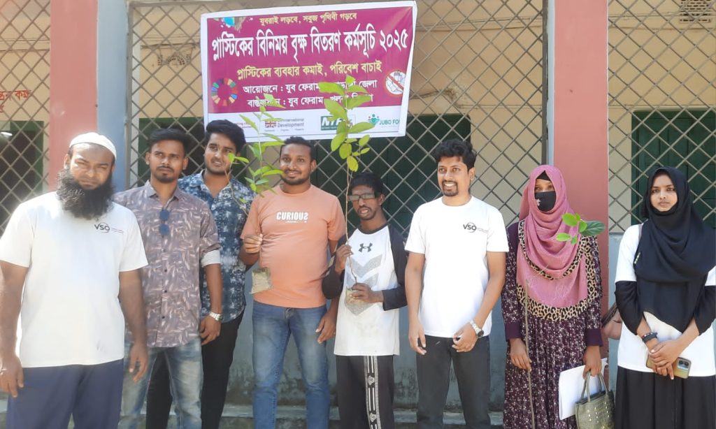 যুব ফোরাম খুলনার বিভাগের উদ্যোগে খুলনা বিভাগের ১০ জেলায় চলছে প্লাস্টিকের বিনিময়ে বৃক্ষ বিতরণ কর্মসূচি তারিই ধারাবাহিকতায় আজকে চুয়াডাঙ্গা জেলা যুব ফোরাম এর আয়োজনে আলমডাঙ্গায় প্লাস্টিকের বিনিময়ে বৃক্ষরোপন কর্মসূচি দ্বিতীয় পর্ব সফলভাবে অনুষ্ঠিত হয়। যুব ফোরাম খুলনা বিভাগীয় কমিটির সভাপতি আসাদুজ্জামান লিমন এর নেতৃত্বে অনুষ্ঠানটি আলমডাঙ্গা সরকারি কলেজ প্রাঙ্গনে অনুষ্ঠিত হয়। জলবায়ু পরিবর্তনের বিরূপ প্রভাব মোকাবিলা ও পরিবেশ সংরক্ষণের লক্ষ্যে খুলনা বিভাগে শুরু হয়েছে এক অভিনব ও ব্যতিক্রমী উদ্যোগ। প্লাস্টিক বর্জ্য হ্রাস এবং সবুজ পৃথিবী গড়ার প্রত্যয়ে যুব ফোরাম খুলনা বিভাগীয় কমিটি একযোগে ১০ জেলায় শুরু করেছে ‘প্লাস্টিকের বিনিময়ে বৃক্ষ বিতরণ কর্মসূচি’।