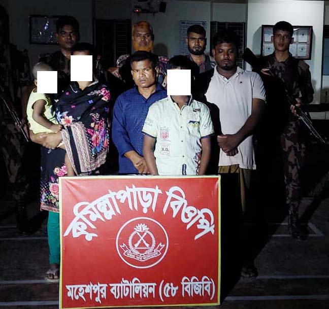 ভারতে অবৈধভাবে অনুপ্রবেশ করায় ৭ বাংলাদেশী নারী ও পুরুষকে  আটক করা হয়েছে। গত দুই দিনে মহেশপুর সীমান্তে বিজিবি পৃথক দুটি অভিযান চালিয়ে তাদেরকে আটক করে। এছাড়াও আরো দুটি অভিযানে ভারতীয় মদ  উদ্ধার করা হয়। তবে এ ঘটনায় কাউকে আটক করা যায়নি।