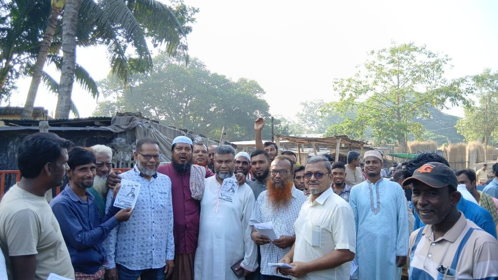 আলমডাঙ্গার মুন্সিগঞ্জ পানের হাটে ধানের শীষের পক্ষে প্রচারণা চালিয়েছেন চুয়াডাঙ্গা জেলা বিএনপির নেতা কর্মী। বুধবার সকাল ৭টার দিকে মুন্সীগঞ্জ পানের হাটে উপস্থিত হন জেলা বিএনপির সাধারণ সম্পাদক শরীফুজ্জামান শরীফ। এসময় তিনি হাটে ঘুরে ঘুরে ব্যবসায়ী ও পান চাষীদের সাথে কুশল বিনিময় ও বিএনপির ৩১ দফার লিফলেট বিতরণ করেন। পান চাষী ও ব্যবসায়ীদের অনুরোধে সংক্ষিপ্ত বক্তব্যে দেন তিনি ‘পানের বরজ আমাদের চুয়াডাঙ্গার গৌরব, আর এই কৃষিই হলো আমাদের অর্থনীতির শক্তি। কিন্তু আপনারা বলুন, আজ কি সেই বরজের মালিক বা হাটের ব্যবসায়ীরা শান্তিতে আছেন? সারের দাম, বিদ্যুতের দাম বেড়েছে, কিন্তু পানের ন্যায্যমূল্য কি আপনারা পাচ্ছেন? ভিশন ২০৩০-এ আমাদের যে সুষম উন্নয়নের লক্ষ্য, তা এই হাটের প্রতিটি পানের বরজ মালিকের জীবনে প্রতিফলিত হবে।