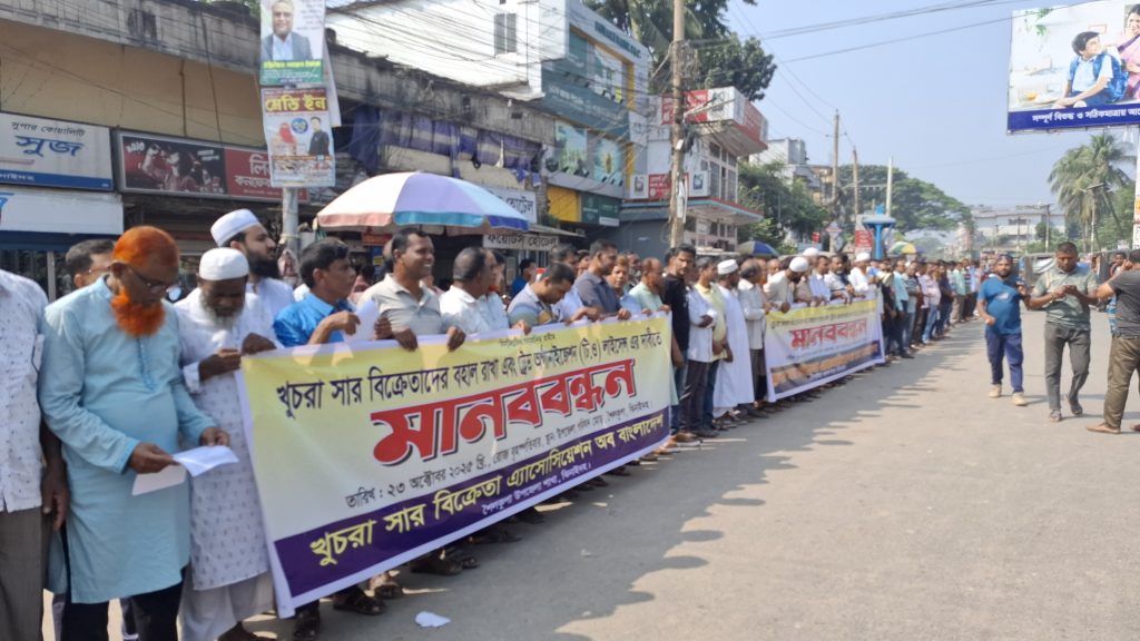 ঝিনাইদহে লাইসেন্সের দাবিতে খুচরা বিক্রেতা সাব ডিলারদের মানববন্ধন