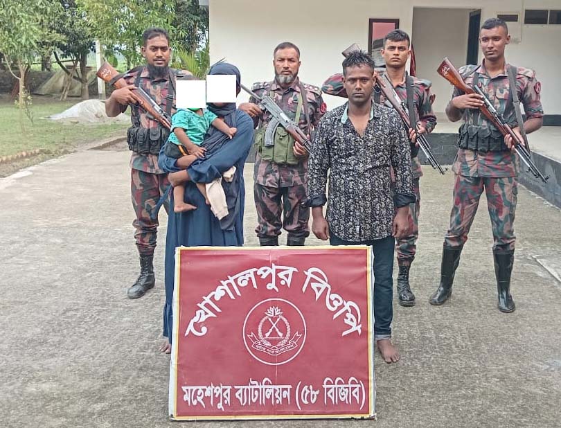 অপরদিকে গতকাল শনিবার সকাল সাড়ে ৭টার দিকে বাঘাডাংঘা বিওপি’র সীমান্ত পিলার-৬০/৩৩-আর এর নিকট হুদাপাড়া গ্রামে হাবিলদার তোফাজ্জেল হোসেনের নেতৃত্বে নিয়মিত টহল পরিচালনা করে। এ সময় বাংলাদেশ হতে ভারতে যাওয়ার সময় বাঘাডাঙ্গা গ্রামের দালাল মোঃ উজ্জল মন্ডল (৩৫)সহ, এক বাংলাদেশী নাগরিককে আটক করা হয়। আটক বাংলাদেশী নাগরিক মোঃ সুমন মন্ডল(১৯) ঝিনাইদহ জেলার হামিদপুর গ্রামের বাসিন্দা। একই দিন সকাল ৯টার দিকে খোসালপুর বিওপি’র সীমান্ত পিলার-৬০/১০৫-আর এর নিকট খোসলপুর গ্রামে নিয়মিত টহল পরিচালনা করে। এ সময় অবৈধভাবে বাংলাদেশ হতে ভারতে অনুপ্রবেশের সময় ৩ জনকে আটক করা হয়। এর মধ্যে ১ জন পুরুষ, ১ জন নারী ও ১ জন শিশু। আটক পুরুষ সোলায়মান তালুকদার (২৭) ফরিদপুর জেলার বাসিন্দা।