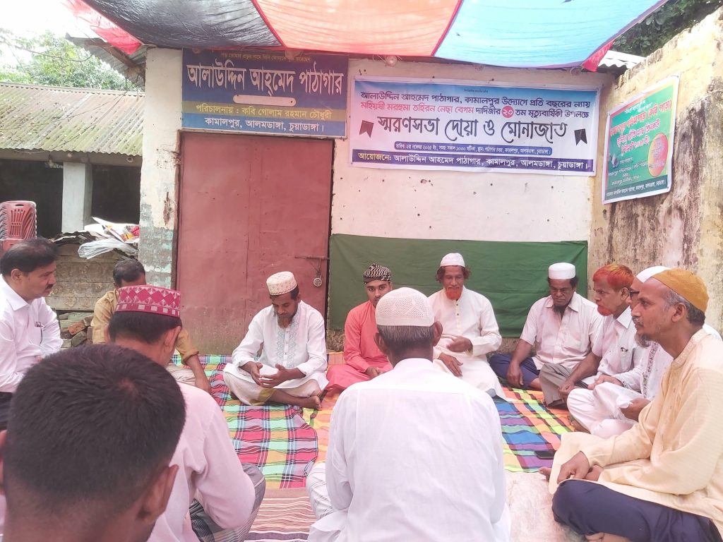 আলমডাঙ্গা কামালপুর আলাউদ্দীন আহমেদ পাঠাগারের উদ্যোগে মরহুমা তহিরণ নেছা বেগমের ২৩ তম মৃত্যু বার্ষিকী পালিত হয়েছে। রবিবার কামালপুর আলাউদ্দীন আহমেদ পাঠাগার চত্বরে বাদ আছর দোয়া মাহফিল অনুষ্ঠিত হয়েছে। দোয়াপুর্ব আলোচনা সভায় সভাপতিত্ব করেন আলাউদ্দিন আহমেদ পাঠাগারের পরিচালক কবি গোলাম রহমান চৌধুরি। প্রধান অতিথি হিসেবে উপস্থিত ছিলেন আলমডাঙ্গা সাহিত্য পরিষদের সভাপতি ওমর আলী মাষ্টার।