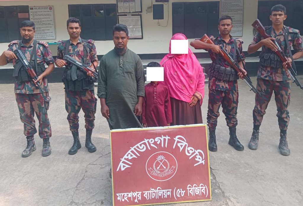 ভারত থেকে অবৈধভাবে বাংলাদেশে অনুপ্রবেশের সময় ৪ নারী-পুরুষকে আটক করা হয়েছে। গত দুই দিনে বিজিবি মহেশপুর সীমান্তে পৃথক দুটি অভিযানে তাদেরকে আটক করে। এদের মধ্যে ২ জন নারী, ১ জন পুরুষ ও ১ জন শিশু। এছাড়াও পৃথক আরো ৫টি অভিযানে ফেন্সিডিল, সিরাপ ও মদ উদ্ধার করা হয়েছে।