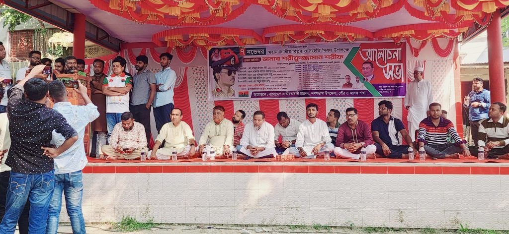 ৭ নভেম্বর ছিল মহান জাতীয় বিপ্লব ও সংহতি দিবস। ১৯৭৫ সালের এই দিনে সিপাহী জনতা কাঁধে কাঁধ মিলিয়ে জিয়াউর রহমান কে বন্দীদশা থেকে মুক্ত করে দেশের ভার তুলে দেন। দিবসটি উপলক্ষে গতকাল রবিবার আলমডাঙ্গা এরশাদ মঞ্চে আলমডাঙ্গা উপজেলা, পৌর ও কলেজ ছাত্রদল এর উদ্যোগে আলোচনা সভার আয়োজন করা হয়। সকাল সাড়ে ১০টায় আলমডাঙ্গা পৌর ছাত্রদলের আহবায়ক আতিক হাসনাত রিংকুর সভাপতিত্বে আলোচনা সভা শুরু হয়। প্রধান অতিথি ছিলেন চুয়াডাঙ্গা জেলা বিএনপির সাধারণ সম্পাদক ও চুয়াডাঙ্গা ১ আসনে বিএনপি মনোনিত সংসদ সদস্য পদপ্রার্থী শরীফুজ্জামান শরীফ।