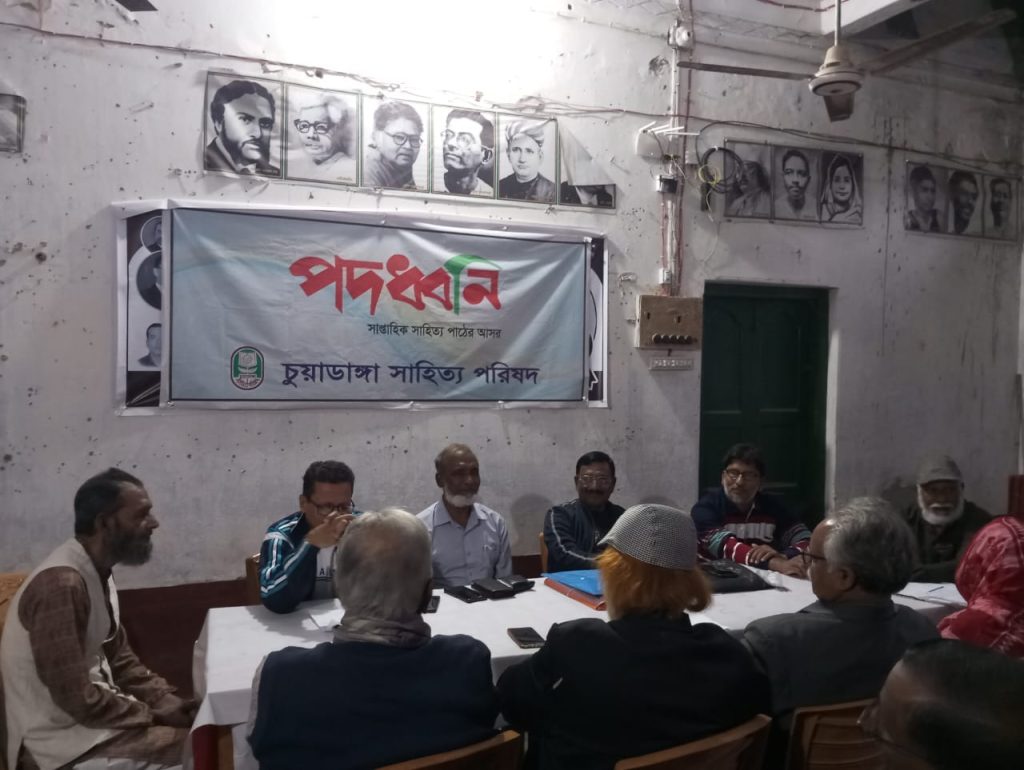 চুয়াডাঙ্গা সাহিত্য পরিষদের নিয়মিত সাপ্তাহিক সাহিত্য আসর ‘পদধ্বনি’-এর ১৫৯৩তম পর্ব অনুষ্ঠিত হয়েছে। শুক্রবার বিকেল চারটায় চুয়াডাঙ্গা সাহিত্য পরিষদের শহীদ আলাউল হলে এর আয়োজন করা হয়। এতে সভাপতিত্ব করেন পরিষদের সভাপতি ইকবাল আতাহার তাজ।