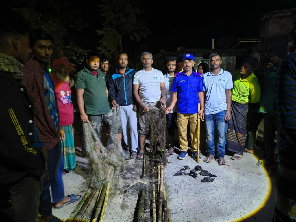 ফুলবাড়িয়ায় পাখি শিকার দমনে অভিযান, জাল-সরঞ্জাম পুড়িয়ে ধ্বংস