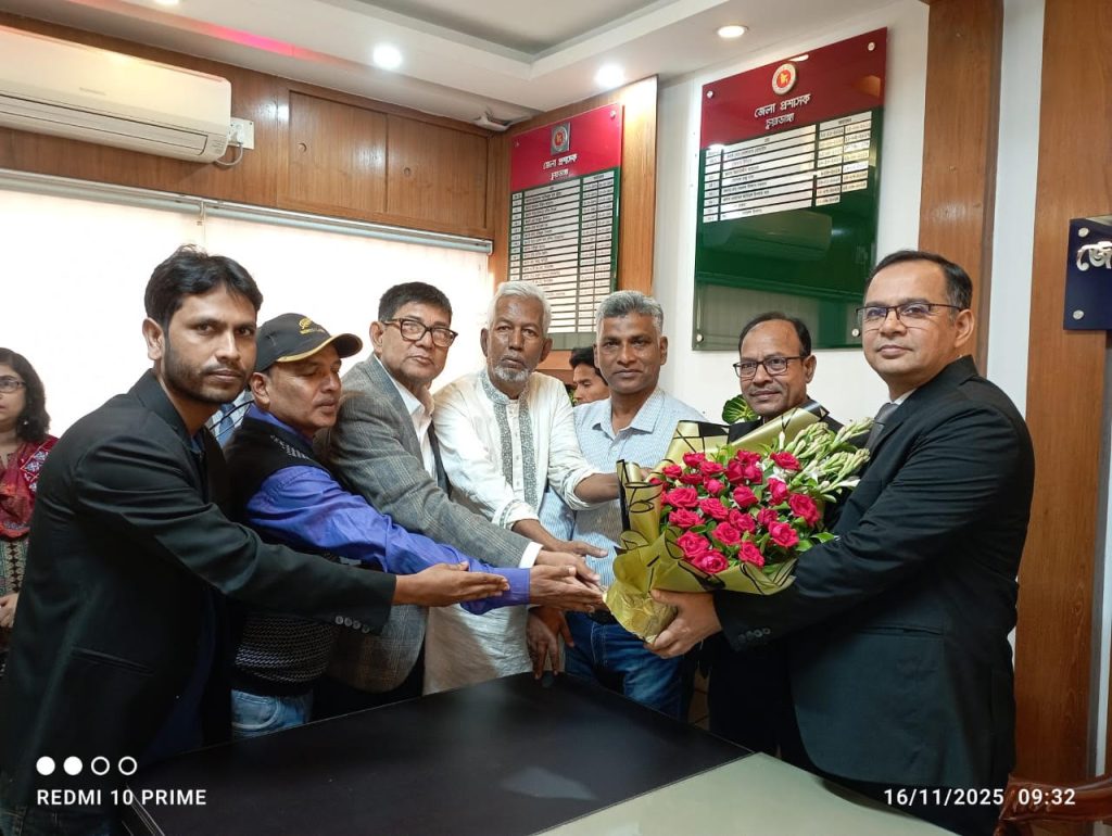 চুয়াডাঙ্গা জেলা প্রশাসক মোহাম্মদ জহিরুল ইসলামকে ফুলেল শুভেচ্ছায় বিদায় জানালো প্রেসক্লাব নেতৃবৃন্দ। গতকাল রবিবার সকাল সাড়ে ৯টায় জেলা প্রশাসকের অফিসকক্ষে এ শুভেচ্ছা জানানো হয়। ভারপ্রাপ্ত জেলা প্রশাসক হিসেবে অতিরিক্ত জেলা প্রশাসক (ডিডিএলজি) শারমিন আক্তার দায়িত্বভার গ্রহন করেছেন।