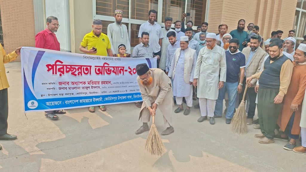 জনস্বাস্থ্যের মানোন্নয়ন ও হাসপাতালের পরিবেশ সুরক্ষায় বিশেষ পরিচ্ছন্নতা অভিযান চালিয়েছে বাংলাদেশ জামায়াতে ইসলামী-এর কোটচাঁদপুর উপজেলা শাখা। গতকাল সোমবার বেলা ১১টার দিকে কোটচাঁদপুর উপজেলা স্বাস্থ্য কমপ্লেক্স চত্বরে ঝিনাইদহ-৩ আসনের সংসদ সদস্য ও জামায়াতে ইসলামীর কেন্দ্রীয় শুরা সদস্য অধ্যাপক মতিয়ার রহমান নিজ হাতে ঝাড়ু নিয়ে কর্মসূচির আনুষ্ঠানিক উদ্বোধন করেন। উদ্বোধনের পর তিনি হাসপাতালের অভ্যন্তরীণ ওয়ার্ড, বারান্দা ও বহিঃপ্রাঙ্গণের পরিষ্কার-পরিচ্ছন্নতা কার্যক্রম সরাসরি তদারকি করেন। পরে একই দিনে মহেশপুর উপজেলা স্বাস্থ্য কমপেক্সে অনুরূপ পরিচ্ছন্নতা অভিযান পরিচালনা করা হয়। অভিযানে হাসপাতালের পরিচ্ছন্নতা কর্মীদের পাশাপাশি স্থানীয় স্বেচ্ছাসেবী সংগঠনের কর্মীরাও অংশ নেন। অভিযান শেষে আয়োজিত সভায় এমপি মতিয়ার রহমান বলেন, হাসপাতাল হলো মানুষের শেষ আশ্রয়ের জায়গা। এখানে মানুষ সুস্থ হতে আসে, অসুস্থ হতে নয়। হাসপাতালের পরিচ্ছন্নতা ও সেবার মান নিয়ে কোনো আপস করা হবে না।