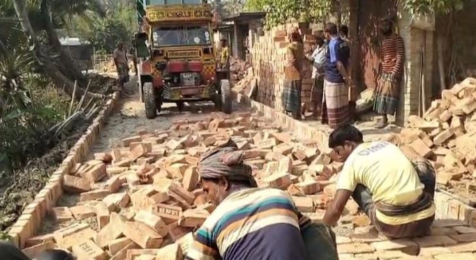 স্থানীয় সূত্রে জানা যায়, ৫২৫ ফুট দৈর্ঘ্যের একটি রাস্তা নির্মাণের জন্য প্রায় ৮ লাখ টাকার টেন্ডার পায় ‘জাহিদুল এন্টারপ্রাইজ’ নামে একটি ঠিকাদারি প্রতিষ্ঠান। কাজ শুরুর পর থেকেই ২ ও ৩ নম্বর ইট ব্যবহারসহ বিভিন্ন অনিয়মের অভিযোগ ওঠে। হেরিংবোন প্যাটার্নে রাস্তা নির্মাণকাজ চলাকালে নিম্নমানের ইট ব্যবহারের বিষয়টি স্থানীয়দের নজরে আসে।