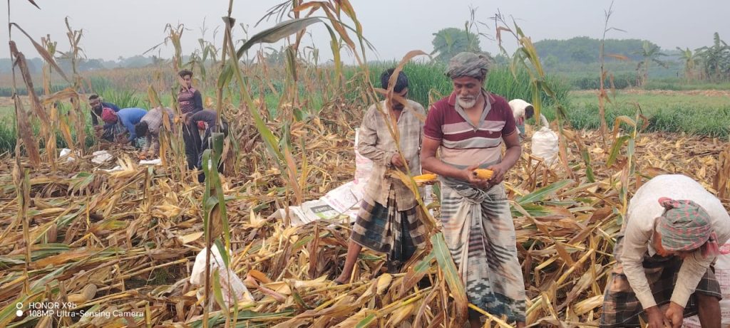 উপজেলার কাশিপুর, আন্দুলবাড়িয়া ও হাসাদাহসহ বিভিন্ন মাঠ ঘুরে দেখা গেছে, ঝড়ের কারণে অধিকাংশ ভুট্টাগাছ ভেঙে মাটিতে হেলে পড়েছে। এতে স্বাভাবিক সময়ের তুলনায় অনেক বেশি শ্রমিক দিয়ে ফসল কাটতে হচ্ছে। যেখানে আগে প্রতি বিঘায় ৫ থেকে ৭ জন শ্রমিকেই কাজ শেষ করা যেত, সেখানে এখন প্রয়োজন হচ্ছে ১০ থেকে ১২ জন পর্যন্ত।