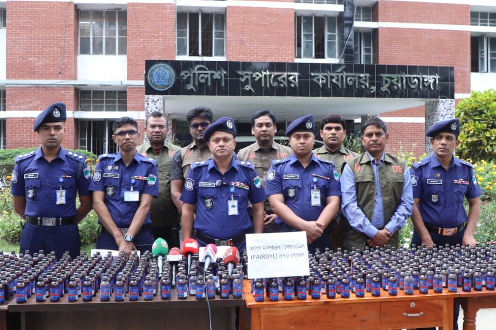 জীবননগরে ডিবি পুলিশের মাদক বিরোধী অভিযানে প্রাইভেট কারসহ ৫৭৬ বোতল ফেয়ারডিল জব্দ, গ্রেফতার ২