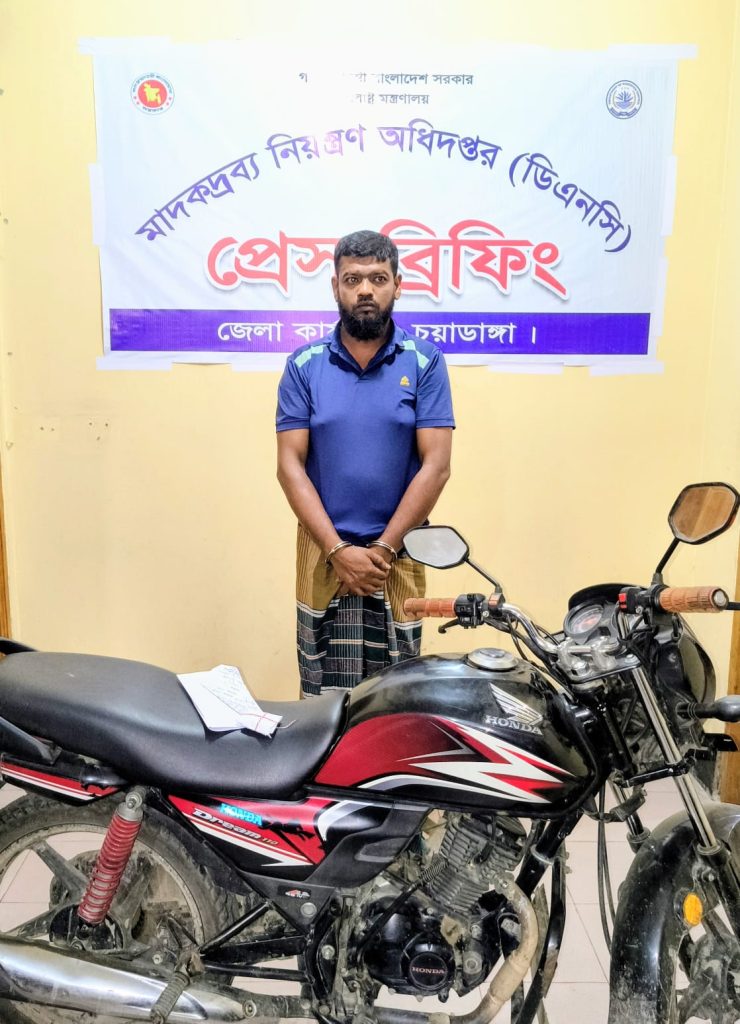 চুয়াডাঙ্গা শহরের ওয়ালটন প্লাজার সামনে থেকেইয়াবা ও মোটরসাইকেলসহ বেগনগরের যুবক গ্রেপ্তার