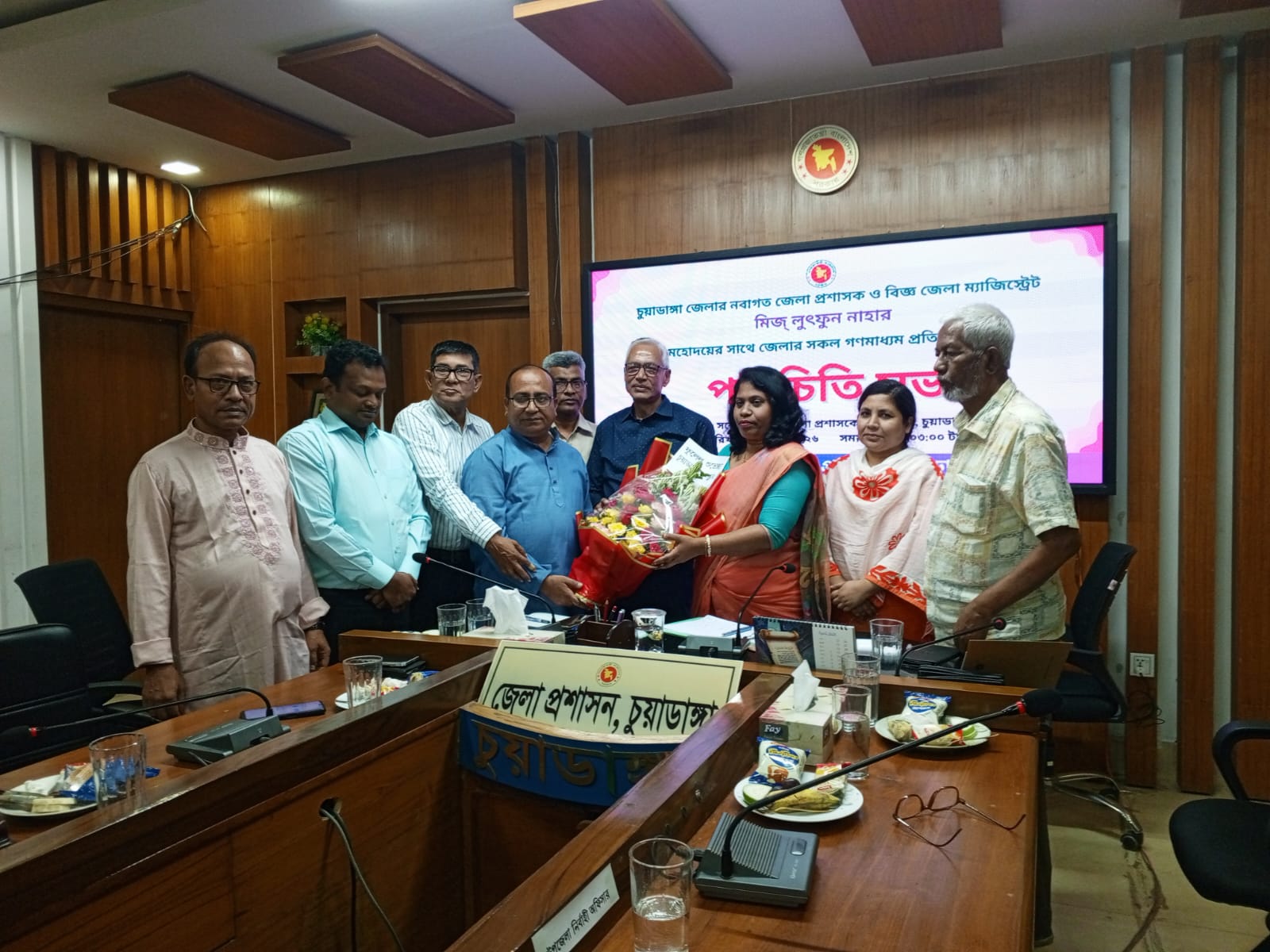 চুয়াডাঙ্গার নবাগত জেলা প্রশাসক মিজ্ লুৎফন নাহারের সাথে গণমাধ্যম প্রতিনিধিদের পরিচিতি সভা অনুষ্ঠিত হয়েছে। গতকাল রবিবার বেলা ৩টার দিকে চুয়াডাঙ্গা জেলা প্রশাসকের সম্মেলন কক্ষে এ পরিচিত সভা অনুষ্ঠিত হয়।