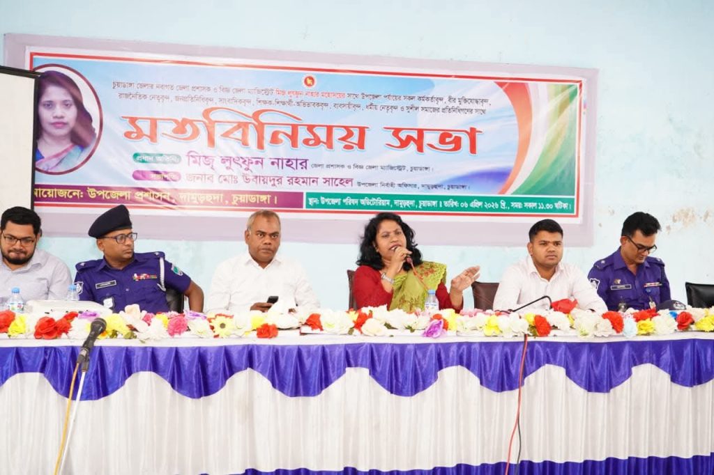 সভায় প্রধান অতিথির বক্তব্যে নবাগত জেলা প্রশাসক ও বিজ্ঞ ম্যাজিস্ট্রেট মিজ্ লুৎফুন নাহার বলেন, দামুড়হুদা উপজেলার সার্বিক উন্নয়নে প্রশাসন সর্বোচ্চ আন্তরিকতার সাথে কাজ করবে। জনগণের সমস্যা সমাধানে দ্রুত ও কার্যকর পদক্ষেপ গ্রহণ করা হবে। আপনারা যে সমস্যাগুলো তুলে ধরেছেন, সেগুলো পর্যায়ক্রমে সংশ্লিষ্ট দপ্তরের মাধ্যমে সমাধানের উদ্যোগ নেওয়া হবে।