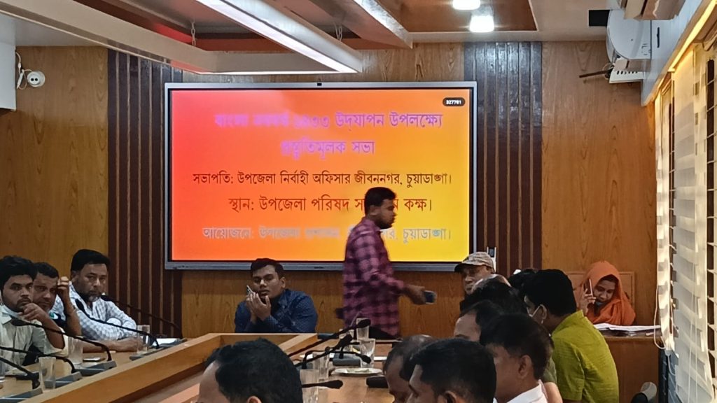 জীবননগরে বাংলা নববর্ষ ১৪৩৩ পালন উপলক্ষে প্রস্তুতিমূলক সভা অনুষ্ঠিত হয়েছে| গতকাল মঙ্গলবার বেলা ১১টায় উপজেলা প্রশাসনের আয়োজনে উপজেলা পরিষদের সভাকক্ষে এ সভা অনুষ্ঠিত হয়। সভায় সভাপতিত্ব করেন উপজেলা নির্বাহী অফিসার আশরাফুল আলম রাসেল।