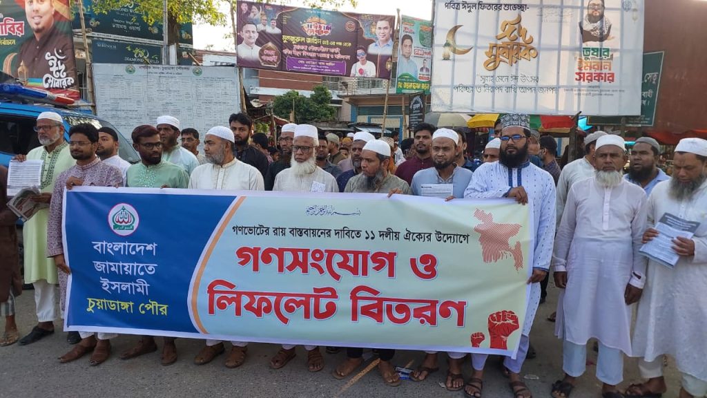 সারা দেশের ন্যায় চুয়াডাঙ্গায় গণভোটের রায় বাস্তবায়নের দাবিতে ১১ দলীয় ঐক্যের উদ্যোগে গণসংযোগ ও লিফলেট বিতরণ কর্মসূচি পালন করা হয়েছে। গতকাল বৃহস্পতিবার বিকালে চুয়াডাঙ্গা শহীদ হাসান চত্বর থেকে লিফলেট বিতরণের শুরু হয়ে প্রিন্স প্লাজা, বড় বাজার ও নিউমার্কেট এলাকা প্রদক্ষিণ করে পুনরায় শহীদ হাসান চত্বরে এসে কর্মসূচি শেষ হয়।