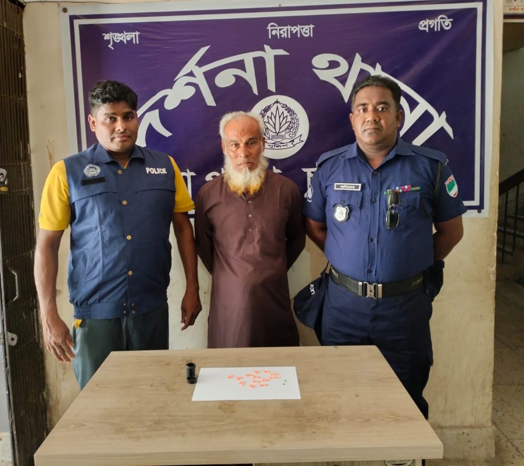দর্শনা রেলকলোনী এলাকার নুরু হোসেন (৬২)কে ইয়াবাসহ গ্রেফতার করেছে দর্শনা থানা পুলিশ। গতকাল শনিবার সকাল সাড়ে ৬টার দিকে গোপন সংবাদের ভিত্তিতে দর্শনা থানার অফিসার ইনচার্জ মেহেদী হাসানের নেতৃত্বে মাদকবিরোধী অভিযান পরিচালনা করা হয়। অভিযানে এসআই সাইফুল মোল্লা ও সঙ্গীয় ফোর্স অংশ নেন।