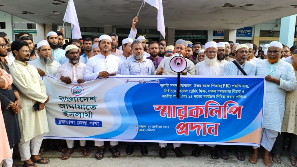 ৫ দফা দাবিতে জেলা প্রশাসকের কাছে চুয়াডাঙ্গা জেলা জামায়াতের স্মারকলিপি প্রদান দাবি মেনে নিন, অন্যথায় আবার গণ-আন্দোলনের সূচনা হবে জেলা আমীর রুহুল আমিন